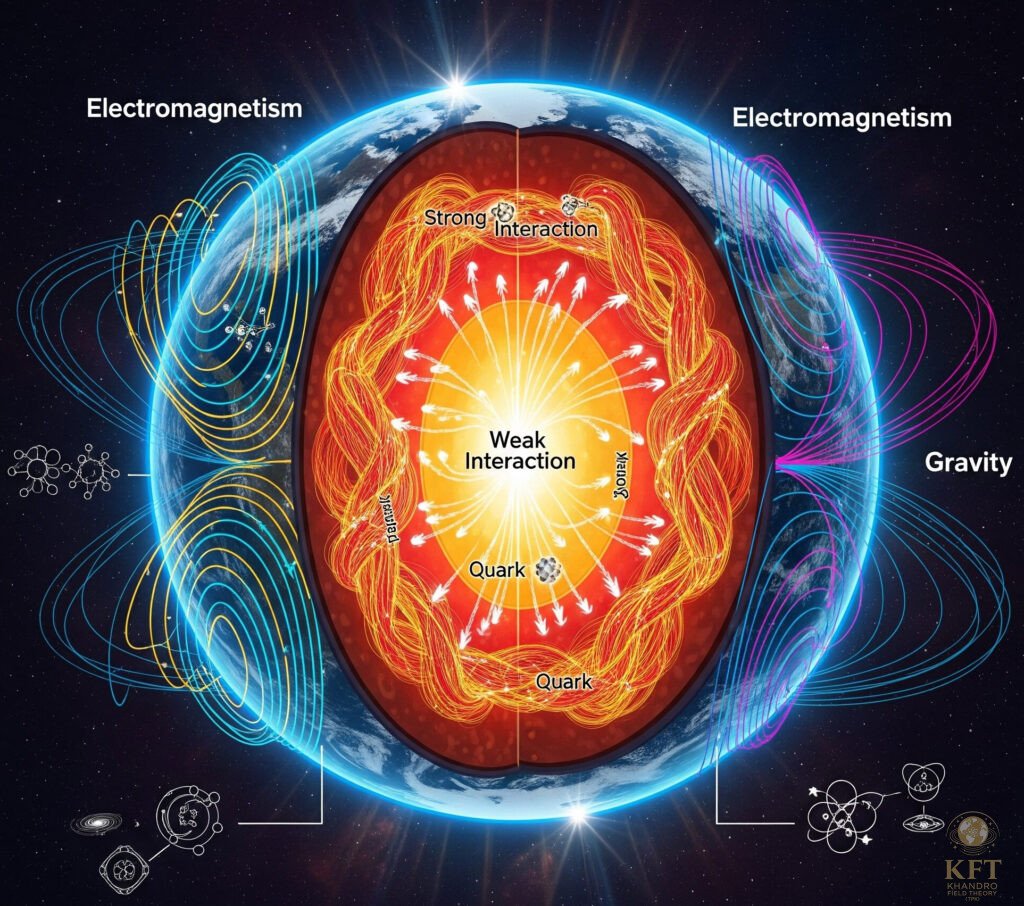 | Ruch fotonu | Foton podąża geodezyjną w zakrzywionej czasoprzestrzeni (pozorna zmiana toru) | Foton spowalnia w gęstszym polu khandro, co zmienia jego tor (efekt podobny do refrakcji) |